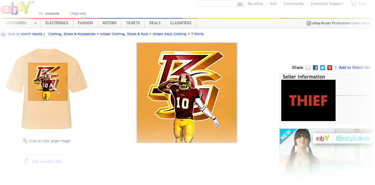 Thanks you very much. I already got some tees made. Check out my portfolio on my site titled “RG3 Logo Tee” for my eBay link or click here!